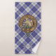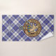 Clan MacPherson crête badge entouré d'une sangle et boucle sur la robe bleue arrière - plan tartan. Texte personnalisé sur chaque serviette.