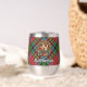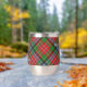 Clan MacPherson badge de crête entouré d'une sangle et boucle sur l'arrière - plan tartan. Texte personnalisé des deux côtés.