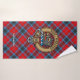 Clan MacTavish badge crête entouré d'une sangle et boucle sur l'arrière - plan tartan. Texte personnalisé sur chaque serviette.
