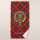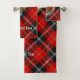 Clan Marjoribanks crête badge entouré d'une sangle et boucle sur l'arrière - plan tartan. Texte personnalisé sur chaque serviette.