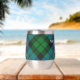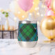 Clan Morrison badge de crête entouré d'une courroie et boucle sur l'arrière - plan tartan de chasse. Texte personnalisé des deux côtés.