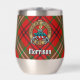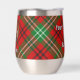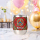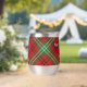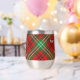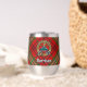 Clan Morrison badge crête entouré d'une courroie et boucle sur l'arrière - plan tartan rouge. Texte personnalisé des deux côtés.
