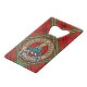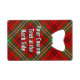 Clan Morrison badge crête entouré d'une courroie et boucle sur l'arrière - plan tartan rouge. Texte personnalisé des deux côtés.