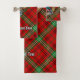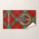 Clan Morrison badge crête entouré d'une courroie et boucle sur l'arrière - plan tartan rouge. Texte personnalisé sur chaque serviette.