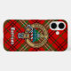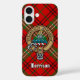 Clan Morrison badge crête entouré d'une courroie et boucle sur l'arrière - plan tartan rouge. Texte personnalisé.