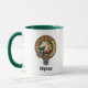 Clan Oliphant badge crête entouré d'une sangle et boucle sur l'arrière - plan tartan. Texte personnalisé des deux côtés.