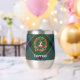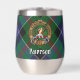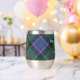 Clan Paterson crête badge entouré d'une sangle et boucle sur l'arrière - plan tartan. Texte personnalisé des deux côtés.