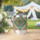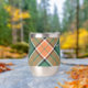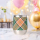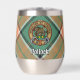 Clan Pollock badge crête entouré d'une sangle et boucle sur l'arrière - plan tartan. Texte personnalisé des deux côtés.
