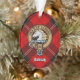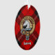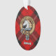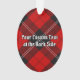 Clan Ramsay badge crête entouré d'une sangle et boucle sur l'arrière - plan tartan rouge. Texte personnalisé des deux côtés.