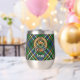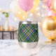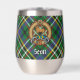 Clan Scott badge crête entouré d'une courroie et boucle sur l'arrière - plan écossais vert. Texte personnalisé des deux côtés.
