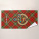 Clan Scott badge crête entouré d'une sangle et boucle sur l'arrière - plan tartan rouge. Texte personnalisé sur chaque serviette.