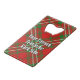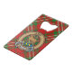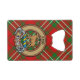 Clan Scott badge crête entouré d'une sangle et boucle sur l'arrière - plan tartan rouge. Texte personnalisé des deux côtés.