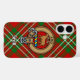 Clan Scott badge crête entouré d'une sangle et boucle sur l'arrière - plan tartan rouge. Texte personnalisé.