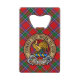Clan Sinclair badge de crête entouré d'une courroie et boucle sur l'arrière - plan tartan rouge. Texte personnalisé des deux côtés.