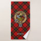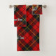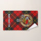Clan Wallace crête badge entouré d'une sangle et boucle sur l'arrière - plan tartan. Texte personnalisé sur chaque serviette.