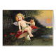 Une carte de voeux vintage avec du charme comportant un petit ange mignon se reposant sur un champignon avec un hibou, peint par l'illustrateur américain/créateur publicitaire Ellen Hattie Clapsaddle.