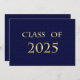 Classe de 2025 Graduation Party Invitation à la texture bleue pour l'arrière - plan et or pour le nom. Le dos est une texture bleue avec des lettres d'or pour les invitations à la fête de remise des diplômes.