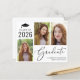 Simple et économique Classe de graduation 2023 faire-part avec un collage photo de 3 images et "Graduate" dans un script élégant. Ajoutez le nom du diplômé, l'année de classe et l'école ou l'université en typographie moderne.