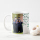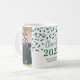 Classe modèle photo personnalisable de 2025 tasse de graduation avec motif confetti vert et argent.