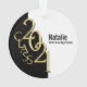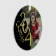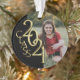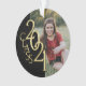 Ornement photo de graduation Black and Gold 2021 avec élégante "classe de 2021", faux look métallique. Montrés en noir avec or 2021, les diplômés et leurs parents vont adorer ce bide de la remise de diplômes photo gardienne de l'ornement et le chérir toujours. Personnalisez cet ornement rond en céramique avec photo d'un côté et texte de l'autre ou retirez le texte personnalisé et ajoutez une 2ème photo de l'autre côté.