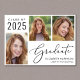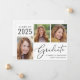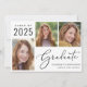 Simple Class of 2025 graduation faire-part avec un collage photo de 3 images et "Graduate" dans un script élégant. Ajoutez le nom du diplômé, l'année de classe et l'école ou l'université en typographie moderne.