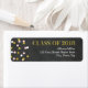 Classe de 2018 étiquettes de adresse avec motif de tableau de bord fonds et un mélange de rose, or et confetti blanc.