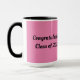 La tasse combo en noir, blanc et rose, présente une image clip d'une diplômée, avec le message, "Félicitations Classe de 2025". Un grand cadeau pour le diplômé de l'école ! Vous pouvez personnaliser le texte et l'année, micro-ondes et lave-vaisselle coffre aussi!
