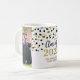 Classe de modèle photo personnalisable de 2025 tasse de graduation avec motif de confetti noir et or.