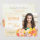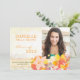 Les fleurs tropicales colorées ont conçu aux invitations faites sur commande de partie de Chambre ouverte des annonces | d'obtention du diplôme de photo. Cette belle et unique carte plate peut servir d'invitation de maison ouverte d'aîné et/ou de faire-part supérieur d'obtention du diplôme. Tous les texte et photo de défaut peuvent être entièrement customisés avec vos propres mots et photo. Sentez-vous libre pour changer les tailles, les polices et les couleurs du texte aussi bien.