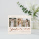 Faites de votre faire-part de graduation un véritable inoubliable avec cette Invitation de graduation photo avec un collage de trois photos et une élégante calligraphie moderne. Parfait pour les diplômés du secondaire, de l'université ou de l'université, cette invitation à la remise des diplômes vous permet de présenter trois de vos photos préférées qui mettent en évidence les moments clés de votre parcours universitaire. La superbe calligraphie moderne ajoute une touche design et contemporaine, élevant votre faire-part et donnant le ton pour une célébration mémorable. Entièrement personnalisable, cette invitation de remise de diplômes vous permet d'ajouter votre nom, votre année de remise de diplômes, votre école et les détails de l'événement, ce qui en fait un moyen personnel et unique de partager votre grande réussite. Que vous planifiez une fête de remise de diplômes, une cérémonie ou une journée portes ouvertes, cette invitation est la meilleure façon d’invitation vos proches à participer à votre célébration.
