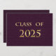 Classe de 2025 carte avec texture violette pour l'arrière - plan et or pour le nom. Le dos est une texture violette avec des lettres d'or pour les annonces de graduation.