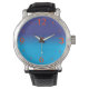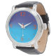Une montre à grand visage très simple avec un visage bleu varigé, Red Numerals. Classic dans le style, cette montre ne datera jamais.Mouvement quartz à trois mains, et bracelet en cuir véritable.