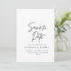 This is a modern elegant classic typography script, black and white whimsical wedding save the date flat card. Customise your text to make this design more unique.