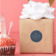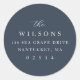 Le sceau d'adresse de retour arrondi comporte votre nom et votre adresse en lettres blanches classiques avec un accent de script, sur un arrière - plan bleu marine muet. Conçu pour coordonner avec notre mariage d'huîtres côtières et notre collection d'événements.