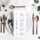 Ce beau menu est parfait pour votre prochain événement ! Modifiez facilement les éléments du menu et affichez ce beau design sur chaque assiette ! Personnalisez le message de remerciement à l'arrière - ou supprimez ! Voir la collection entière pour plus d'articles correspondants !