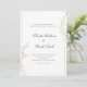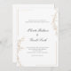 Cette invitation de mariage classique et élégante présente une branche de fleur d'or sur ses bords et une typographie élégante