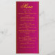Add a bold and luxurious statement to your wedding reception with this red and gold wedding menu card. Featuring a rich deep red-pink background, golden borders, and classic script typography, this design radiates elegance and glamour—perfect for lavish weddings, evening banquets, or romantic celebrations with a regal flair. Fully customizable with your names, date, venue, and meal details.