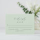 Carte rsvp de mariage simple et moderne avec une disposition propre et une couleur arrière - plan verte sage avec calligraphie moderne. Modifiez et personnalisez-le avec votre date et votre site Web mariage (facultatif). Des invitations de mariage et d'autres objets de cette collection sont disponibles dans mon magasin Wowweds.