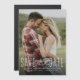 Partagez l'actualité de votre fiançailles et de la fête du mariage à venir avec cette carte magnétique verticale d'une photo enregistrez la carte de date avec un traitement de type moderne mais élégant en blanc qui se trouve au bas d'une photo verticale. Le type a de la place pour les noms longs, plus la date de localisation et d'autres informations pour les amis et la famille comme un site Web.