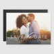 Un simple mais élégant enregistrer la carte magnétique de date pour annoncer votre fiançailles et le mariage à venir. La photo horizontale unique présente du texte blanc en bas avec beaucoup de place pour les noms et les détails de la journée.
