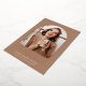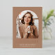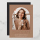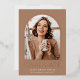 Élégant faire-part de graduation photo dispose d'une photo verticale ou portrait orientée dans une disposition unique voûtée, sur un arrière - plan en terre cuite légère avec garniture rose en feuille d'or. "Graduate" apparaît ci-dessous, ainsi que le nom de votre diplômé et l'école ou le collège. Ajoutez un message personnel à l'arrière, ainsi qu'une photo supplémentaire.