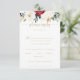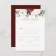 Ces cartes de choix de menu mariage doré classique sont parfaites pour un mariage rustique. Le design se compose de fleurs blanches, bordeaux et dorées et de baies au feuillage vert disposées en bouquets élégants.