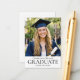 These classic graduation party invitations feature a custom photo and traditional typography. Their small business card size makes them easy to hand out to friends, classmates, and family, or as insert cards to include with your graduation announcements. You can personalize the template with the graduate's name, the party's date, time, location, and RSVP details. Designed with a sophisticated and minimalist aesthetic, these invitations are ideal for graduates who appreciate timeless style. They are perfect for high school, college, or university graduation celebrations. Printing colors: black and white. Explore the online collection for matching printed designs!