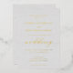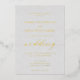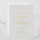 Une faire-part de mariage classique et élégante en lin gris avec un arrière - plan imprimé en lin avec le vrai script Gold Foil avec le mot "mariage" dans une grande calligraphie swash.