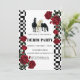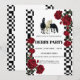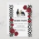 Capture the timeless spirit of the "Run for the Roses" with this striking blend of classic Americana and high-contrast elegance. This Kentucky Derby invitation features a crisp white background framed by bold black-and-white checkered borders—a nod to racing flags and equestrian heritage. The centerpiece showcases a dynamic trio of horses (black and white) galloping in unison, surrounded by lush, deep red roses that symbolize the race's iconic floral tradition.