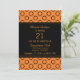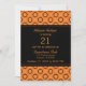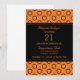 Classic Refinement 21st Birthday Party Invitation en orange et noir avec une hanche et un arrière - plan à la mode circulaire. Cet invitation élégant donne le ton qui convient pour une nuit parfaite de plaisir et de fête ! Customisez cet invitation malin avec les détails de votre fête !