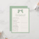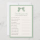 Titre du jeu et questions textuelles pour baby shower ou douche nuptiale. Comprend un arc peint à la main avec un plaid subtil en Sage vert et arrière - plan en ivoire; bordure modifiable et couleur arrière - plan sur l'avant et l'arrière.