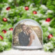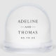 This refined wedding snow globe features a sophisticated serif monogram with your names and wedding date in a structured typographic layout on a clean white background. The back displays your wedding photo for a personalized two-sided keepsake. A polished gift for the modern couple or a timeless anniversary memento with understated elegance. All text and photos are fully customizable.
