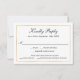 Simple et élégante, cette carte classique de mariage RSVP a une fine bordure en or sur l'avant et l'arrière avec le texte en or assorti. Le modèle de texte comprend des options de menu à sélectionner par vos invités. Personnalisez le modèle de texte avec vos informations de réponse.