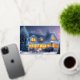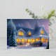 Vos clients aimeront cette carte de vacances classique hiver maison. Le devant dit Joyeuses Fêtes en papier d'aluminium. Le dos a un accueil de vacances et un endroit pour votre nom d'entreprise que vous pouvez personnaliser pour votre entreprise.